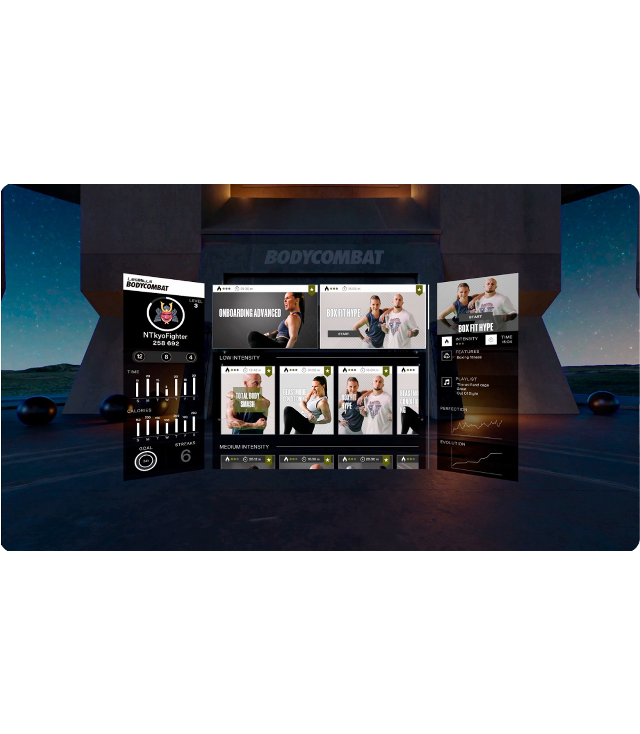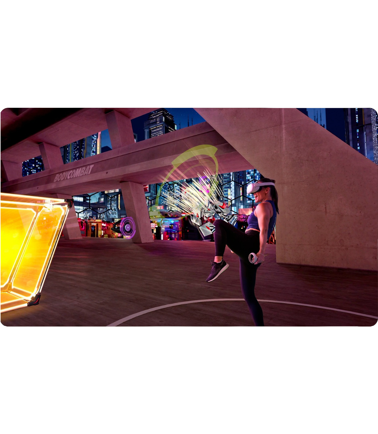 LES MILLS BODYCOMBAT is the top fitness program inspired by several martial arts workouts with moves from Karate, Boxing, Muay Thai and much more! This workout, featured in 1,000s of gyms globally, is now available in VR so you can jump into an immersive fitness experience inside different dreamlike environments.